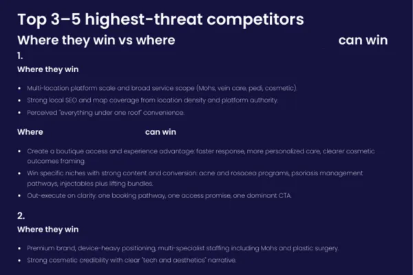 Yes. We tailor the analysis to your specific specialty and competitive context. A dermatology practice in Miami faces different market dynamics than an orthopedic group in Denver. Your report reflects your unique situation.